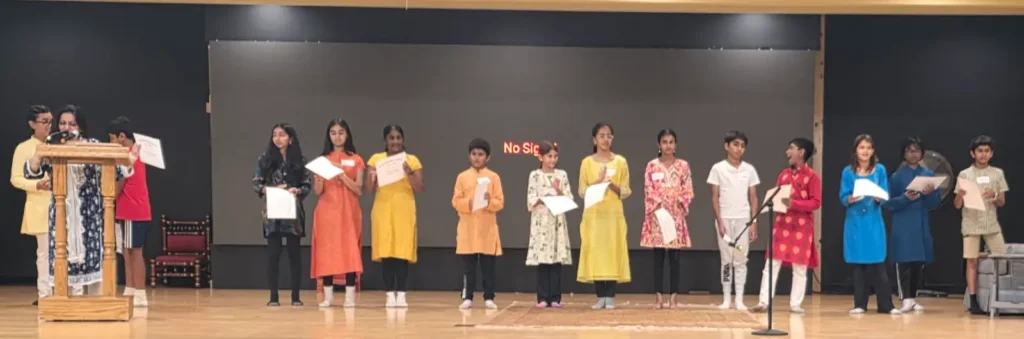 Student participants in HSMN-HUA’s 1st Bhagavad Gita Pariksha were recognized on stage on August 23rd, 2025.
