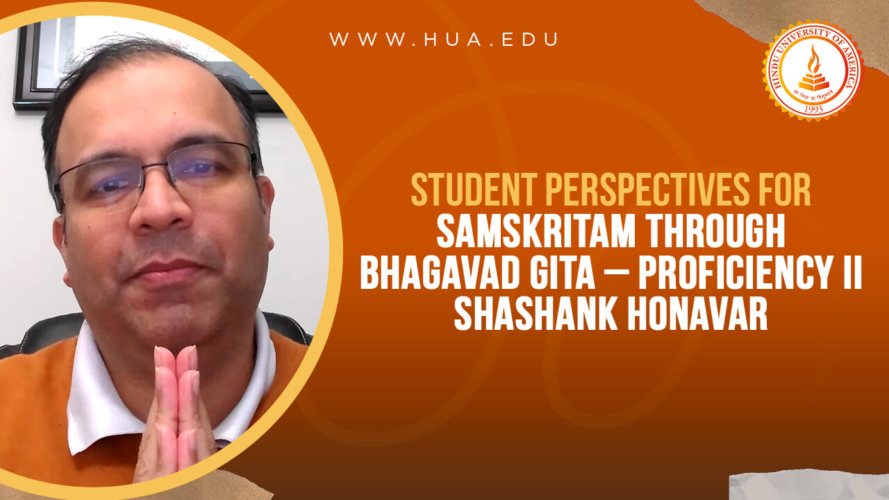 The Certificate Program in Samskritam Through Bhagavad Gita (CSBG) is a one of it’s kind program offered by the Hindu University of America to meet the dual objectives of 1) offering our students a comprehensive and structured approach to learning the Sanskrit language and 2) enabling them to learn and understand an important Sanskrit text and literary work, the Bhagavad-Gītā, in its original Sanskrit form. Students will gain the ability to read, write, comprehend, and interpret the text, as well as chant it in Sanskrit.