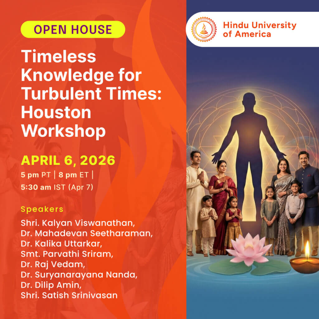 Join us for a powerful introductory webinar to explore the insights behind Timeless Knowledge for Turbulent Times, an immersive workshop offered by Hindu University of America.